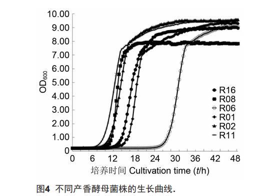 圖4 不同產(chǎn)香酵母菌株的生長曲線。