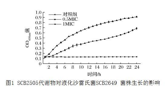 圖1 SCB2505代謝物對(duì)液化沙雷氏菌SCB2649菌株生長(zhǎng)的影響