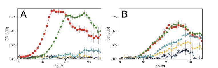 培養(yǎng)。C. phytofermentans ISDg (ATCC 700394) 在Coy厭氧工作站中,在1.5% H2/98.5% N2氣氛下進行厭氧培養(yǎng)。培養(yǎng)物在30°C、pH調整為7的GS2培養(yǎng)基(18)中靜置培養(yǎng),并如文中所述補充碳源。生長動力學通過密封的100孔微孔板(Bioscreen 9502550)中的600 nm光密度(OD600)監(jiān)測,如前所述(19);每次光密度測量前,對培養(yǎng)物進行短暫搖晃以重懸細胞。用于底物消耗和發(fā)酵產物分析的纖維素、纖維二糖和葡萄糖培養(yǎng)物在100-ml血清瓶中生長,脫氣后用丁基橡膠塞密封。