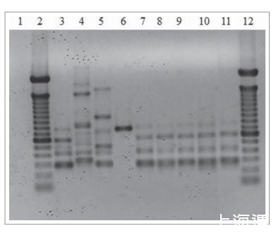 5株分離株的T3B PCR指紋圖譜顯示300至800 bp的DNA片段,通過與巴西利亞孢子絲菌模式菌株獲得的圖譜相似性可以清晰鑒定(圖2)。此外,所有患者分離株產(chǎn)生的圖譜呈現(xiàn)100%相似性。
