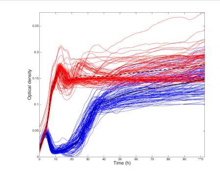 噬菌體在所有微觀世界中整個實驗期間都存在,這通過用實驗結束時分離的噬菌體種群感染祖先細菌進行了驗證。