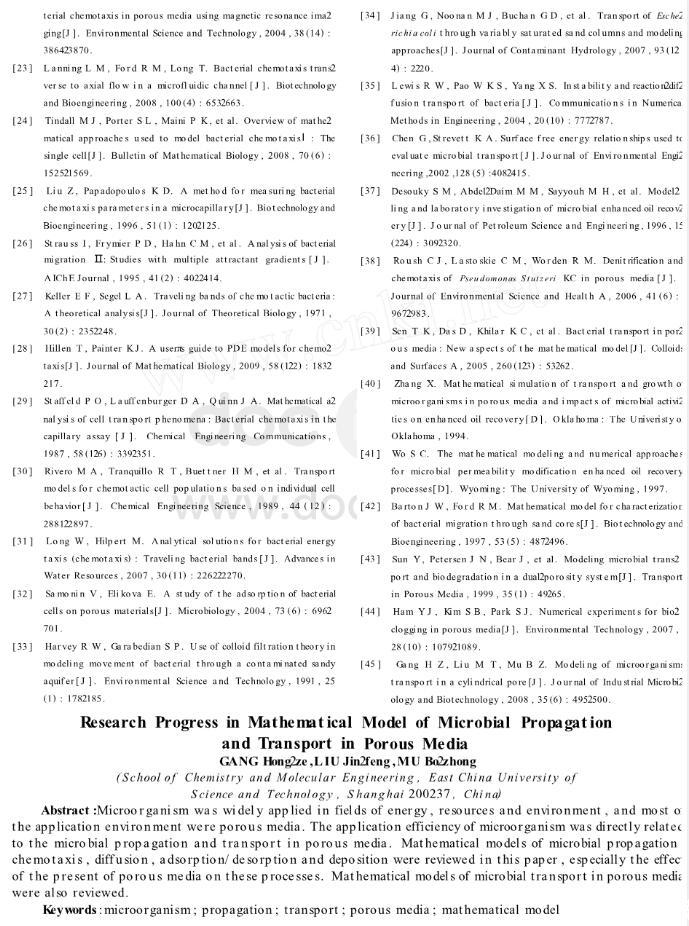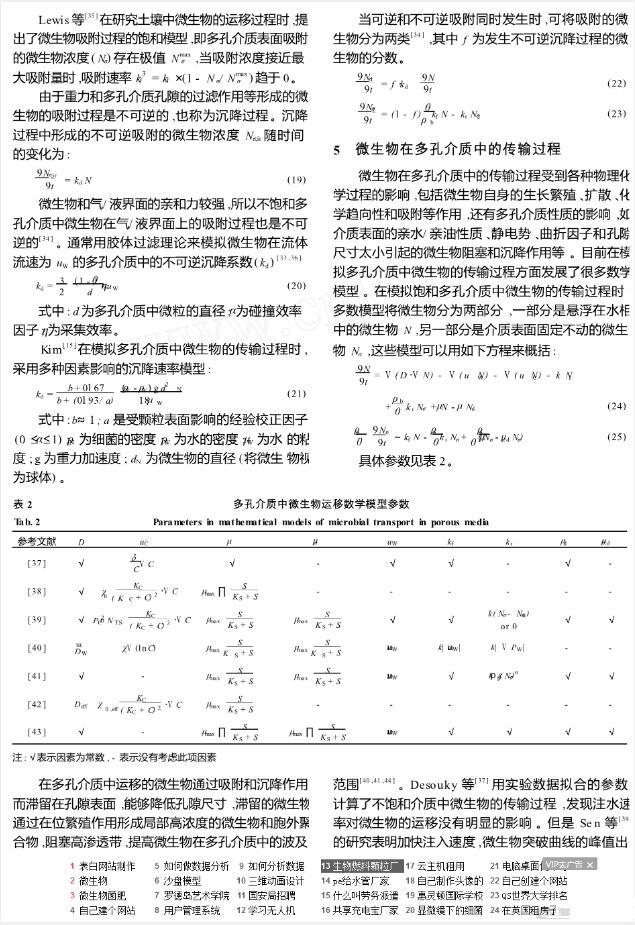 多孔介質(zhì)中微生物生長行為和傳輸過程的數(shù)學模型研究進展
