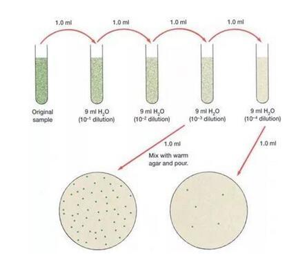 首先把微生物懸液通過(guò)一系列稀釋?zhuān)∫欢康南♂屢号c熔化好的保持在40-50°左右的營(yíng)養(yǎng)瓊脂培養(yǎng)基充分混合,然后把這混合液傾注到無(wú)菌的培養(yǎng)皿中,待凝固之后,把這平板倒置在恒箱中培養(yǎng)。單一細(xì)胞經(jīng)過(guò)多次增殖后形成一個(gè)菌落,取單個(gè)菌落制成懸液,重復(fù)上述步驟數(shù)次,便可得到純培養(yǎng)物。