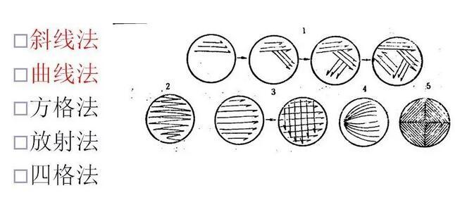 最簡(jiǎn)單的分離微生物的方法是平板劃線(xiàn)法。用無(wú)菌的接種環(huán)取培養(yǎng)物少許在平板上進(jìn)行劃線(xiàn)。劃線(xiàn)的方法很多,常見(jiàn)的比較容易出現(xiàn)單個(gè)菌落的劃線(xiàn)方法有斜線(xiàn)法、曲線(xiàn)法、方格法、放射法、四格法等。當(dāng)接種環(huán)在培養(yǎng)基表面上往后移動(dòng)時(shí),接種環(huán)上的菌液逐漸稀釋?zhuān)詈笤谒鶆澋木€(xiàn)上分散著單個(gè)細(xì)胞,經(jīng)培養(yǎng),每一個(gè)細(xì)胞長(zhǎng)成一個(gè)菌落。