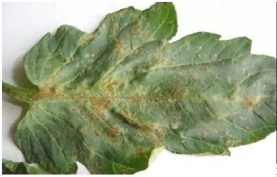 番茄真菌性的葉霉病,葉片背面有明顯的霉層