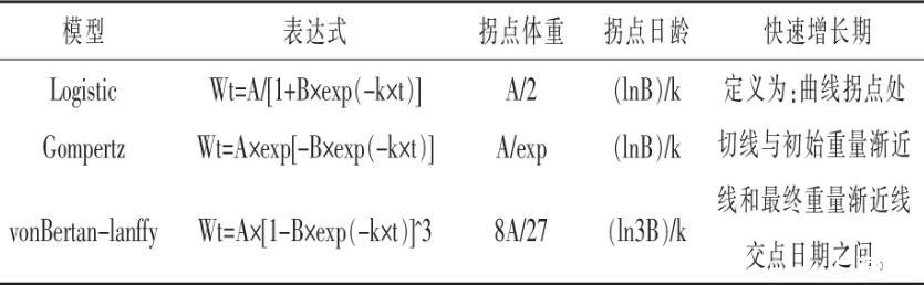 表1生長曲線模型