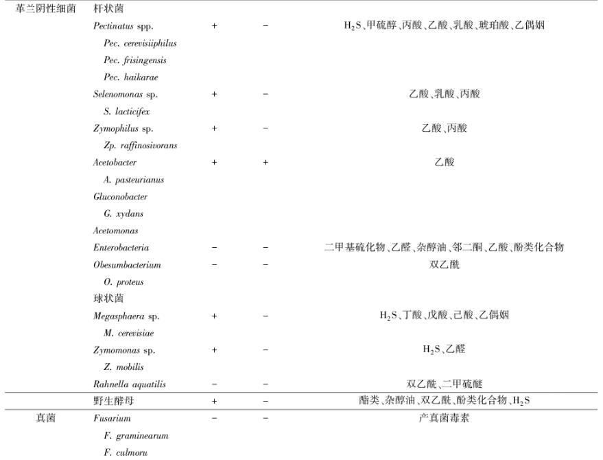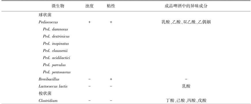 表1啤酒微生物及其對啤酒質(zhì)量的影響