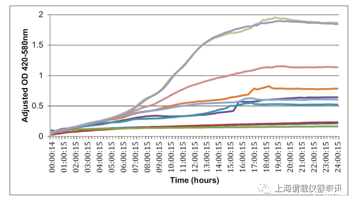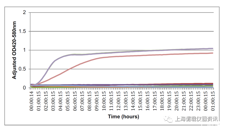 使用Bioscreen C分析儀評估了增溶劑的毒性。Bioscreen C全自動生長曲線分析儀可以用來確定有無防腐劑的細菌生長動力學。Bioscreen蜂窩板的每個孔在TSB中總共含有400μl細菌懸浮液(?2×10 6 cfu孔-1)。Bioscreen全自動生長曲線分析儀在25°C(±1°C)下運行24 h,每隔15分鐘使用寬帶濾光片(420–580 nm)讀取讀數(shù),然后搖動10 s。