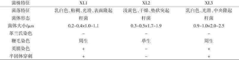 本實驗采用從焦化廠的曝氣池活性污泥中馴化、分離獲得的3株優(yōu)勢菌株,分別命名為XL1、XL2、XL3,特征見表1。