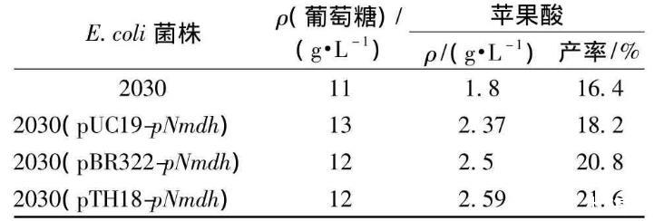 表3含有不同拷貝數(shù)質(zhì)粒的重組菌產(chǎn)L-蘋果酸能力的比較