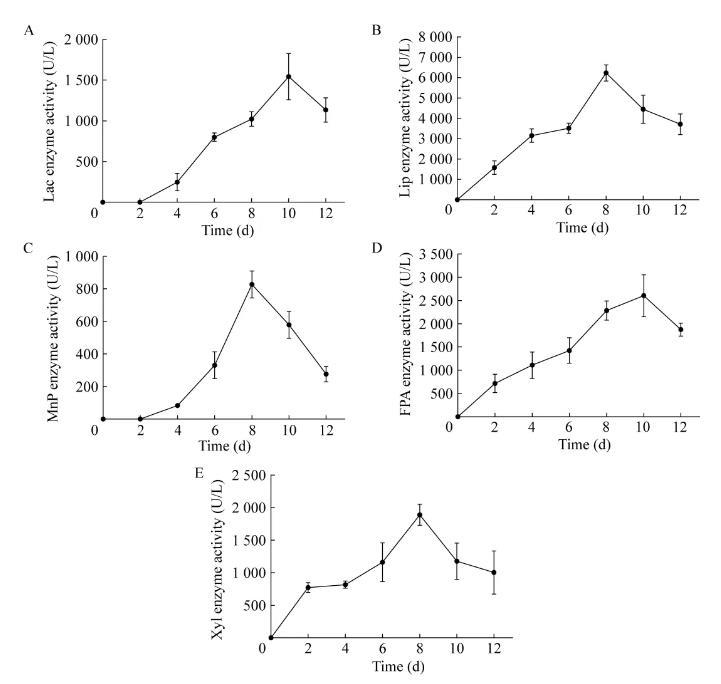 圖3菌株XKG6液體發(fā)酵12 d內(nèi)的酶活變化
