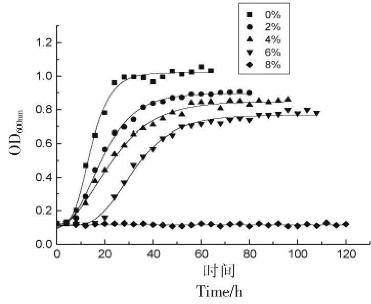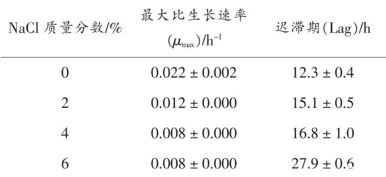 表1不同NaCl條件下短乳桿菌生長動力學(xué)參數(shù)