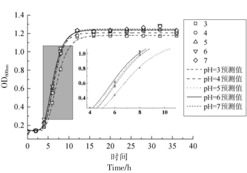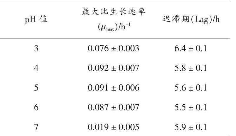 表2不同pH值下短乳桿菌生長動力學(xué)參數(shù)