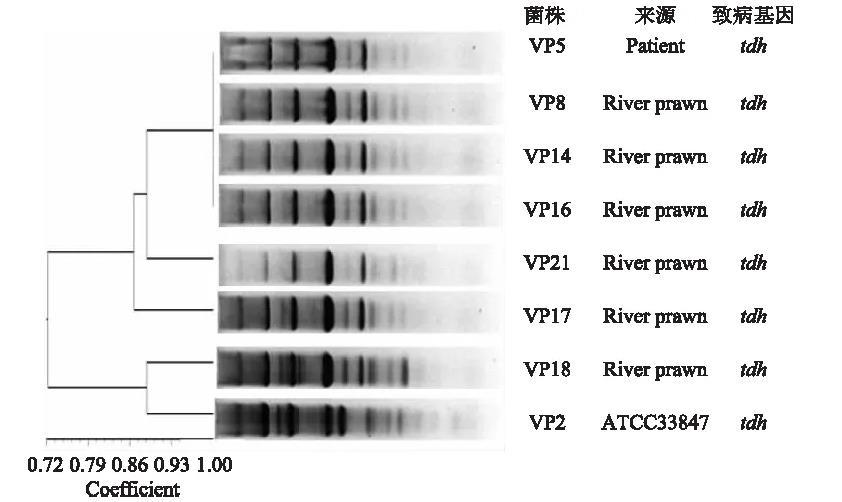 耐藥性致病副溶血性弧菌Vp 18與非耐藥性致病性副溶血性弧菌Vp 2的ERIC-PCR圖譜歸為一類,表明這兩株菌的亞型相似,也說明耐藥性基因可能來自質(zhì)粒上,這也為副溶血性弧菌的耐藥機制的研究提供了一定的參考。