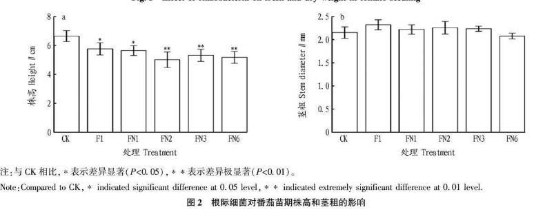 2.3根際細(xì)菌對(duì)番茄苗期株高和莖粗的影響