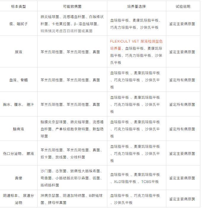 常見標(biāo)本類型及對應(yīng)的培養(yǎng)基選擇