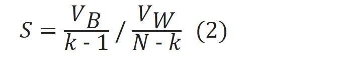 (2)CH index也被稱為方差比準(zhǔn)則,用來評(píng)價(jià)譜聚類在SCRS數(shù)據(jù)集上的聚類效果,聚類質(zhì)量由CH index得分表征,CH index得分通過計(jì)算簇間方差和簇內(nèi)方差計(jì)算得到的,式(2)是CH index得分計(jì)算原理(2)