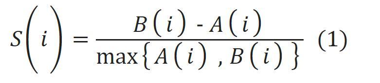 式(1)中,A(i)為SCRS數(shù)據(jù)樣本i到同簇其他樣本的平均距離,B(i)為SCRS數(shù)據(jù)樣本i到其他簇的所有樣本的平均距離。