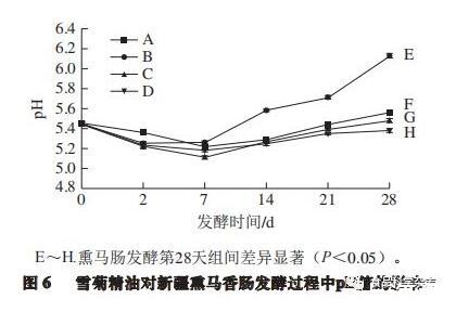 6、雪菊精油對(duì)熏馬腸發(fā)酵過程中pH值的影響