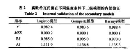 表2腐敗希瓦氏菌在不同溫度條件下二級模型的內部驗證