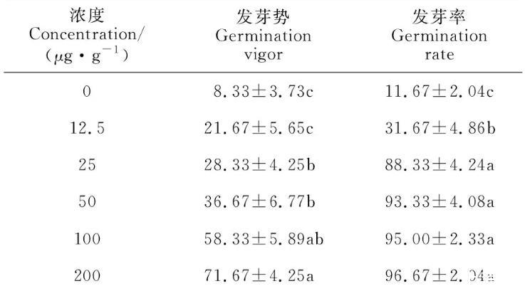 發(fā)芽率=7 d發(fā)芽種子粒數(shù)/供試種子粒數(shù)×100%