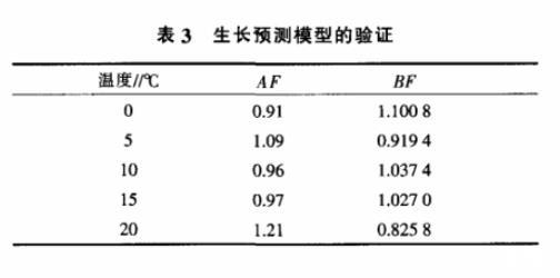 2.2.2 一級模型的檢驗 用準確因子(AF)和偏差因子(BF)來驗證所建一級模型的準確性,從表3可知,準確因子和偏差因子的值均在1左右,說明模型描述有效。