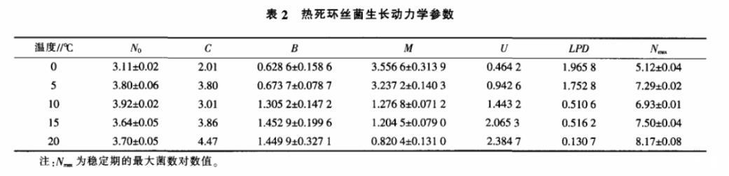 2.2 熱死環(huán)絲菌生長動力學模型的擬合及檢驗