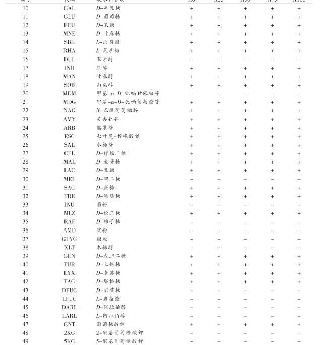 2.1.3菌株連續(xù)傳代過程中碳水化合物利用能力