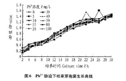 2.3 Pb2+、Cr脅迫對(duì)大腸桿菌、枯草芽孢桿菌生長(zhǎng)曲線的影響