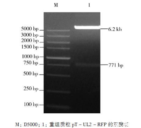 2.1重組質(zhì)粒pT-UL2-RFP的酶切鑒定