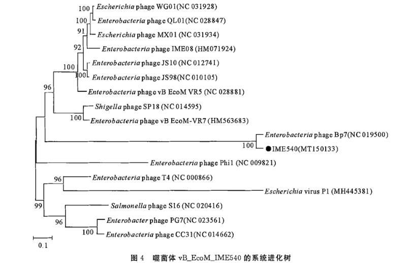 圖4噬菌體vB_EcoM_IME540的系統(tǒng)進(jìn)化樹(shù)