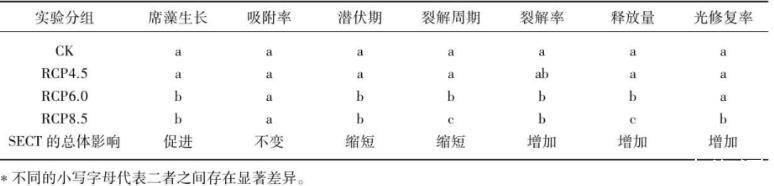 表2席藻生長和噬藻體感染力指標(biāo)在不同RCP等級(jí)下的變化
