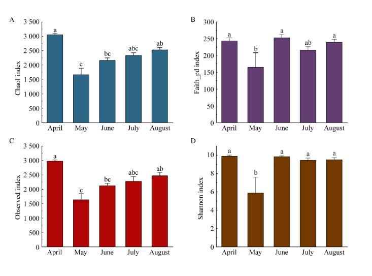 圖5不同月份試驗田土壤細菌群落α多樣性指數(shù)