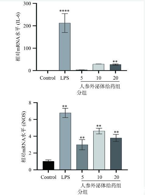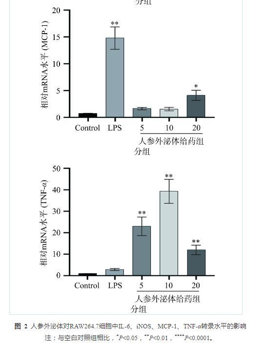 2.2人參外泌體對RAW264.7細(xì)胞中炎癥因子轉(zhuǎn)錄水平的影響