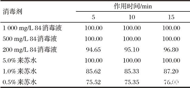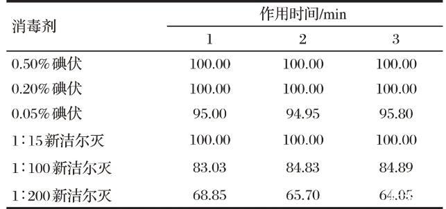2.5消毒劑對(duì)驢源馬鏈球菌馬亞種殺菌率的影響(見(jiàn)表4、表5)