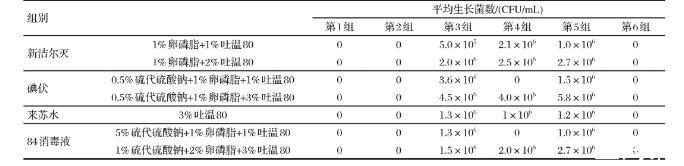 2.4常用消毒劑中和劑的篩選(見(jiàn)表3)