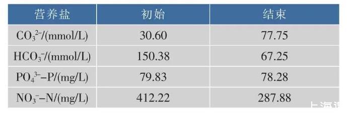 表5培養(yǎng)初始和結束時營養(yǎng)鹽濃度變化
