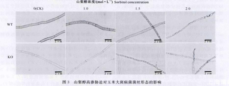 圖3山梨醇高滲脅迫對玉米大斑病菌菌絲形態(tài)的影響