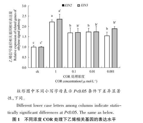 圖1不同濃度COR處理下乙烯相關(guān)基因的表達(dá)水平