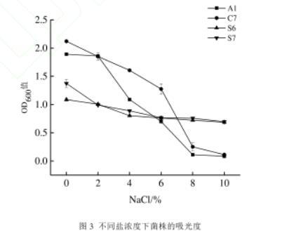 圖3不同鹽含量下菌株的吸光度