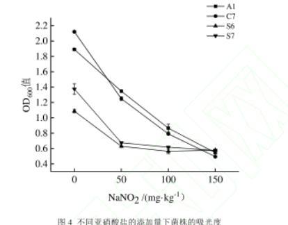 圖4不同亞硝酸鹽添加量下菌株的吸光度