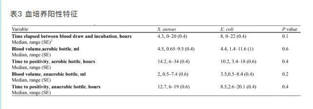 本研究表明TTP與初始接種物直接相關(guān),細菌生長曲線受生長速率和初始細菌載量的影響。金黃色葡萄球菌的生長對所獲得的血容量敏感,此外,樣本轉(zhuǎn)移至微生物實驗室延遲12小時便會導(dǎo)致TTP降低2~3h,這些結(jié)果表明采集一整套培養(yǎng)瓶的重要性,且要保證采夠足量的體積并要迅速轉(zhuǎn)移處理培養(yǎng)瓶。盡管大腸桿菌的生長速率更快,但金黃色葡萄球菌的感染更為嚴重,患者死亡率更高,可能菌血癥的嚴重程度不僅與細菌載量有關(guān),還與細菌毒素相關(guān),如內(nèi)毒素、磷壁酸、肽聚糖和細菌DNA等。