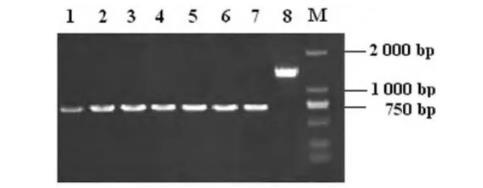2.1成功制備t4606基因缺陷株首先利用自殺質(zhì)粒所具有的氨芐西林抗性,在含有氨芐西林的LB平板上篩選具有抗性的菌落,再進(jìn)一步篩選耐蔗糖的菌落。以篩選獲得的陽性菌落DNA為模板,用t4606基因上、下游引物P1A和P2B進(jìn)行PCR擴(kuò)增,分析傷寒沙門菌t4606基因的重組變異情況。PCR擴(kuò)增檢測相應(yīng)菌落,直至篩選獲得連續(xù)傳代超過3次均僅有缺損片段的菌株。所獲得的菌株即為穩(wěn)定的t4606基因缺陷株。缺陷株及野生株P(guān)CR產(chǎn)物電泳結(jié)果見圖1。經(jīng)DNA序列分析,進(jìn)一步證實(shí)702bp處被BglⅡ核酸限制性內(nèi)切酶的6個(gè)堿基酶切位點(diǎn)所替代。