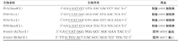 1.3.1 t4606基因缺陷株的制備利用原核生物基因同源重組技術(shù)制備t4606缺陷變異株,篩選連續(xù)3次傳代均獲得穩(wěn)定重組的菌株作為t4606基因缺陷變異株,并采用序列分析進(jìn)行驗(yàn)證。相關(guān)引物見表1。