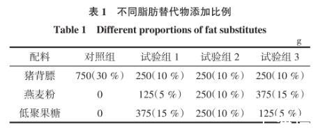 以不同比例的燕麥粉、低聚果糖分別替代部分脂肪制作發(fā)酵香腸:對照組(30%脂肪)、試驗組1(10%脂肪、5%燕麥、15%低聚果糖)、試驗組2(10%脂肪、10%燕麥、10%低聚果糖)及試驗組3(10%脂肪、15%燕麥、5%低聚果糖)。檢測燕麥粉及低聚果糖對發(fā)酵香腸微生物、理化及感官特性的影響。結(jié)果顯示:加工結(jié)束后,試驗組3乳酸菌數(shù)顯著高于其他組(P<0.05),試驗組菌落總數(shù)、葡萄球菌數(shù)及TVB-N值均顯著低于對照組(P<0.05);脂肪替代物對加工后期發(fā)酵香腸的水分活度、pH值、色澤、膠著性、咀嚼性、脂肪含量及灰分均影響顯著,而對蛋白質(zhì)含量、硬度等指標則無顯著影響。試驗組2感官評定結(jié)果最好。綜合各項指標,添加10%豬背膘、10%燕麥粉、10%低聚果糖制作出的發(fā)酵香腸,能夠?qū)游镏竞繌?0%降低至10%,且能夠較好的保持并改善發(fā)酵香腸品質(zhì)。