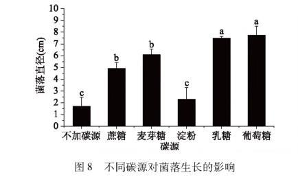 圖8不同碳源對菌落生長的影響