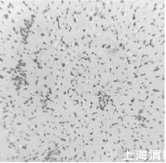 觀察LJK8菌株的平板培養(yǎng)情況,(見圖3),菌落為乳白色但不透明,圓形,邊緣整齊。菌株經(jīng)革蘭氏染色后于顯微鏡下觀察(見圖4),細(xì)胞完全是細(xì)桿狀,均為紫色,因此屬于革蘭氏陽性菌且無芽孢。