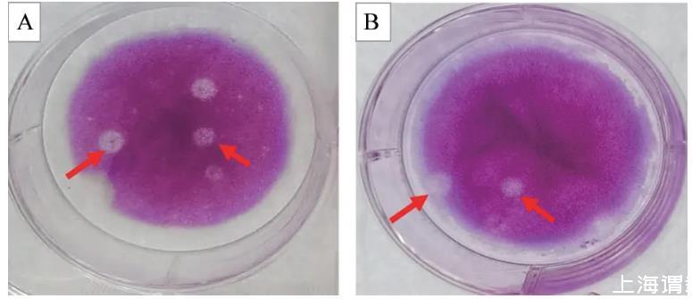 接種至BHK-21細(xì)胞后,rSVA與親本病毒均能產(chǎn)生明顯的噬斑(圖8),且噬斑大小及形態(tài)基本一致,表明拯救病毒與親本病毒具有相似的噬斑形成能力。