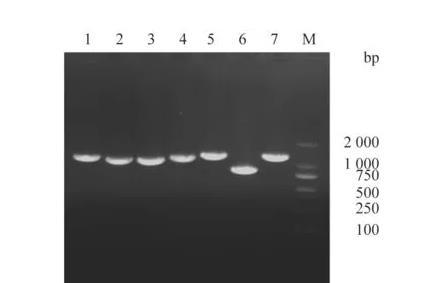 F5代rSVA分節(jié)段PCR擴(kuò)增結(jié)果(圖5)顯示,成功擴(kuò)增出預(yù)期大小的SVA全基因組序列的7個(gè)片段。經(jīng)測序鑒定,測序結(jié)果與親本毒株高度同源。