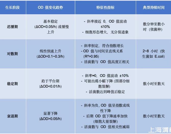 各生長(zhǎng)階段的OD值特征與判斷標(biāo)準(zhǔn)